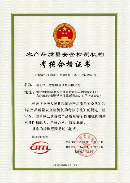 恒一科技可開展農(nóng)產(chǎn)品檢測人員上崗培訓(xùn)、CATL資質(zhì)認(rèn)證指導(dǎo)服務(wù)。